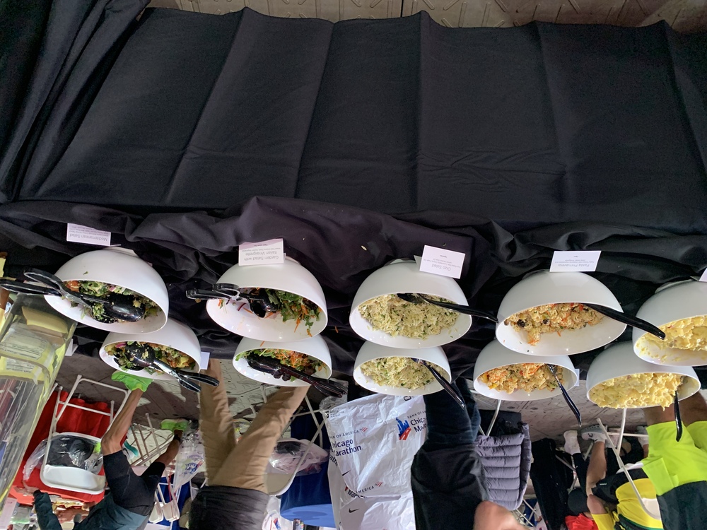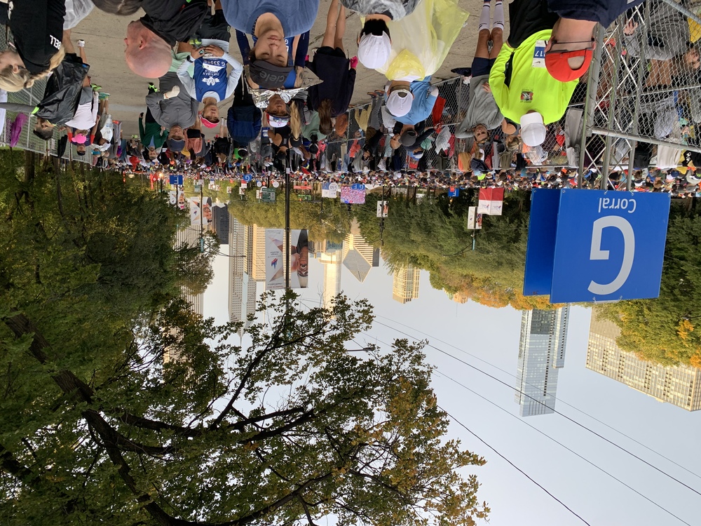 I parked at the 210 South Wabash garage (Yay, SpotHero) and arrived at the security check for race village. No personal bags allowed for runners; just the clear gear check bags acquired at picket pickup.