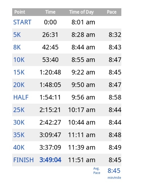 3:49:04 - better than my 2009 Chicago Marathon time by 7 minutes and 38 seconds!